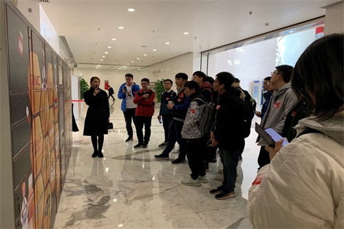 首先,在讲解员的带领下,同学们参观了京东新总部大楼。据了解,京东新总部总面积约28万平方米,于2015年8月16日正式启用,容纳了15000名员工。同学们先后参观了无人超市、京东智能放映馆、京东购物节指挥中心、办公区、休闲区等,多样的的展览活动和无处不在的智能科技设备使同学们了解了京东集团的主要业务、商业模式,让同学们对京东的文化、对互联网行业的工作环境有了感性的认识。