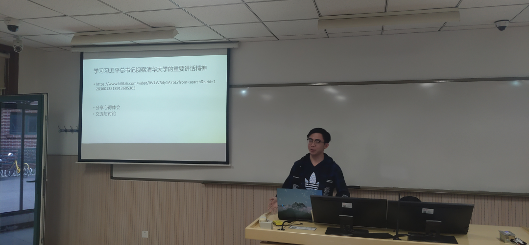 在本次主题团日活动中,团支部首先组织全体同学共同观看了习近平总书记视察清华大学时的重要讲话视频。视频观看完毕后,团支书引导全体团员对当代青年精神风向以及学习党史的必要性展开了热烈的讨论。各团员积极踊跃发言,并走上讲台与大家一起分享自己的学习心得。