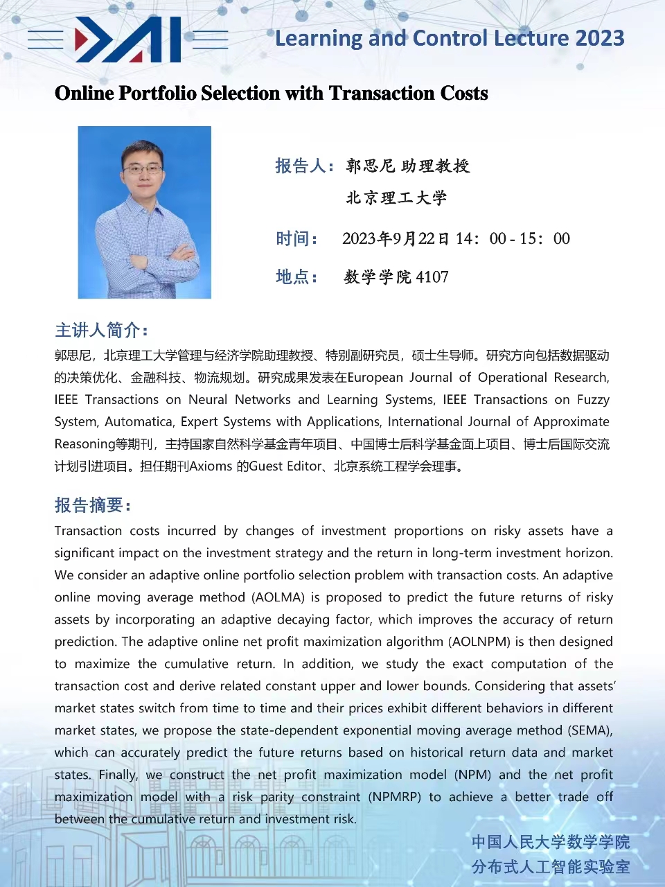 报告人:郭思尼 助理教授,北京理工大学管理与经济学院