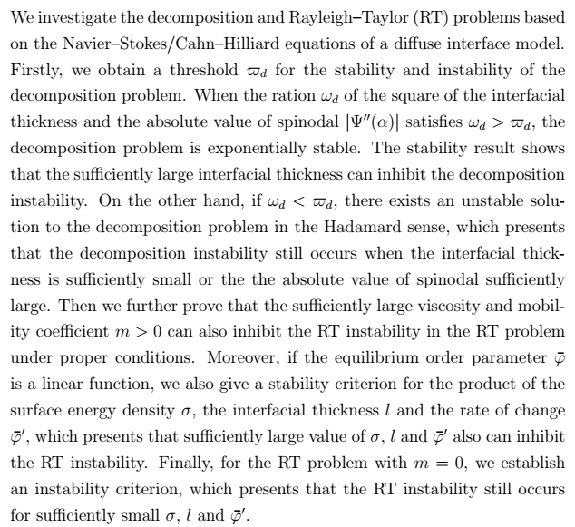 Some Stablity and Instablity Results in a Diffuse Interface Model