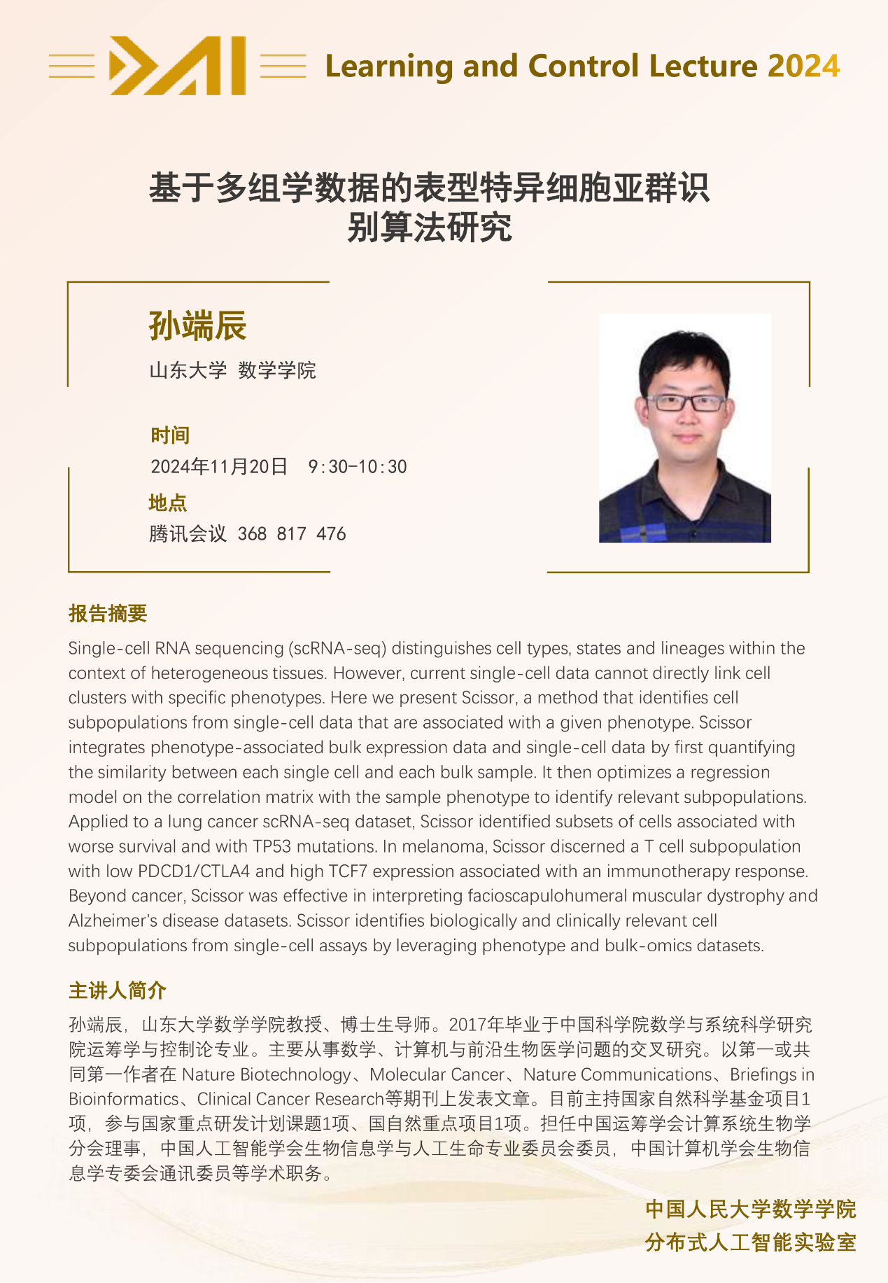 报告题目:基于多组学数据的表型特异细胞亚群识别算法研究