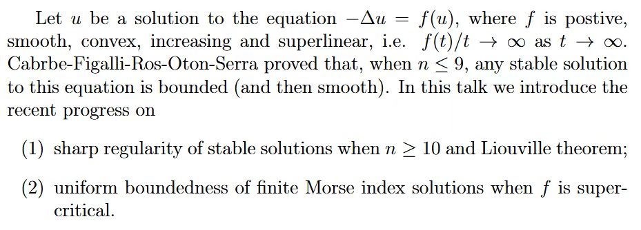 报告题目:Recent progress on the regularity of semilinear elliptic PDEs