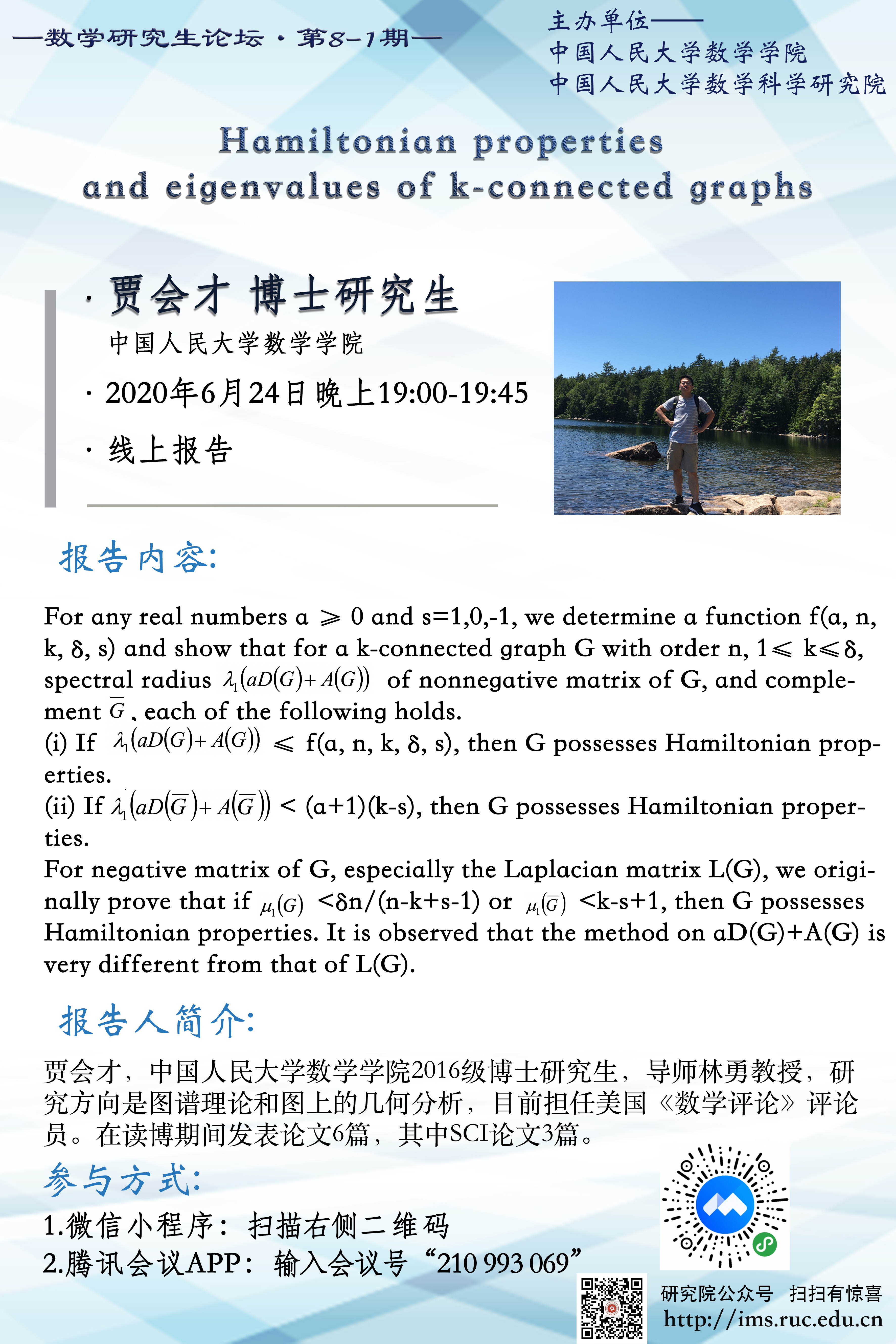 ok1133快讯官方网站研究生论坛 8-1期 —Hamiltonian properties and eigenvalues of k-connected graphs