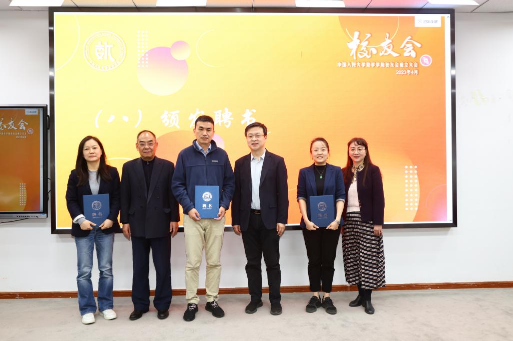 由青格勒图部长、郑志勇院长、周荣主任和严守权老书记为校友会揭牌,并为校友会组织成员颁发聘书。之后,成功组织召开了校友会第一次常务理事会。