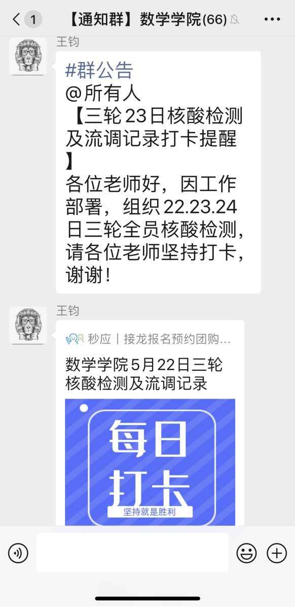 准。畅通信息渠道,精准传递信息,避免漏球、漏气和漏人。学院全部信息的传达都是点对点的直接沟通,坚决杜绝一转了之。每天的具体任务由学院主要领导和各个口的主管领导一对一的进行沟通,每天采取定时和不定时方式及时交流工作进展,汇总最新信息,做到当日事、当日毕。各项日常工作也要精准到位,采取线上线下两个联络渠道,分类精准施控。线上不仅建立了以年级、班级、宿舍为分类的防疫通讯群,还就同学离校情况、隔离情况、特殊需求等不同群体分别组建了几十个群,所有群里都有学院领导班子驻守,每天收集反馈各类信息。同时,对学生按班级网格化管理,将班级管理的责任压实到每个学院领导,要求学院领导班子深入联系班级的班主任、班长以及同学,积极解决同学们关心的问题。邀请校医院汤欣副院长为师生精准解读疫情防护要求。正是因为日常工作精准扎实,在学校决定将静园住宿的同学搬回校内居住时,党员、学生骨干主动承担任务要求分配条件最差的宿舍,26个同学在启动搬家后迅速行动,按照学校要求入住校内临时住所,全程没有任何不和谐的声音和不合适的行为,事后高度评价学校和学院为同学所做的努力和照顾。