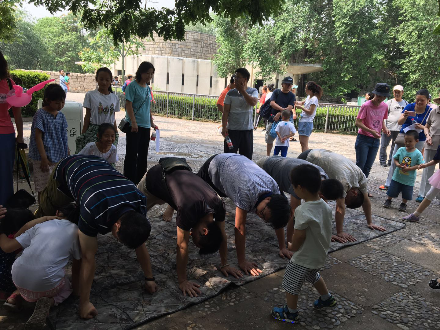 润红的娇阳为六一国际儿童节活动添加了一抹色彩。在参观完小朋友喜欢的各种动物外,我们在动物园河马馆旁的露天空地上举行了丰富多彩的趣味小游戏:“小兔兔过桥”, “爬山洞”“接力跑”“贴鼻子”“趣味保龄球”等。