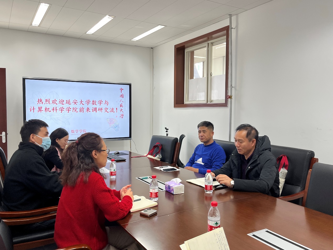 12月1日上午,延安大学数学与计算机科学学院院长王文发、党委副书记崔林立来我院开展调研交流。ok1133快讯官方网站党委书记柯媛元参加座谈并主持交流会。我院党委副书记沈健、副院长姜昊、博士生第二党支部书记谷晓玉、博士生第三党支部书记俞树红参加交流。