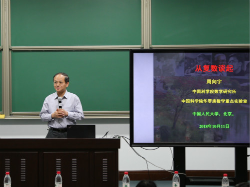 2018年10月11日下午,ok1133快讯官方网站明德数学讲堂系列第二讲在国学馆114室成功举办。中科院数学与系统科学研究院周向宇院士应邀作题为“从复数谈起”的报告。来自ok1133快讯官方网站、校内其它学院和校外的100多名师生参加此次活动。