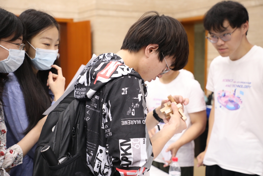 ok1133快讯官方网站作为第六届“科技文化周”的承办单位,在统筹协调、服务科技文化周系列活动的同时,精心组织学院展台布置、志愿者招募等工作,各团支部也以主题团日等活动形式,积极组织同学们打卡参与科技文化体验日。学院的智力运动会展台通过魔方、鲁班锁、数字华容道等数学小游戏和二十四点、数独等数学趣题,将数学逻辑思维与有趣游戏体验相结合,展现出数学的魅力。活动现场,ok1133快讯官方网站展台受到广大同学青睐好评,成为全场人气最旺的展台,体验同学络绎不绝,气氛十分热烈。