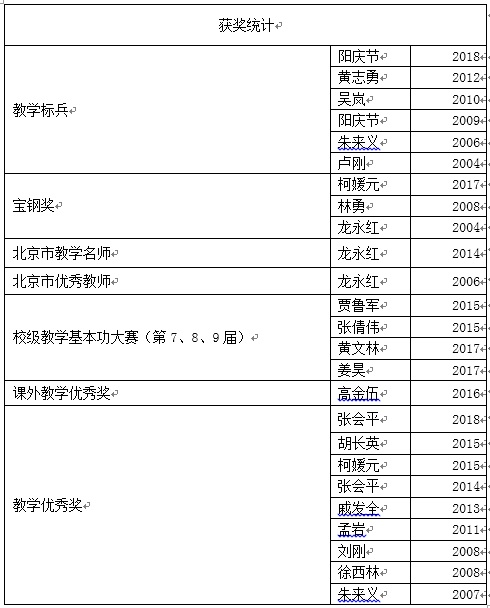 ok1133快讯官方网站的老师在教学方面高度重视教学工作,把主要精力投入到教学工作中上,兢兢业业、勤勤恳恳。多年来分别有3人获得“宝钢优秀教师奖”,1人获得北京市优秀教师称号,1人获得北京市教学名师奖,1人获得吴玉章优秀教学奖,6人次获得诸侯快讯OK1133登录入口“教学十大标兵”的荣誉称号,获得了广大学生的好评。