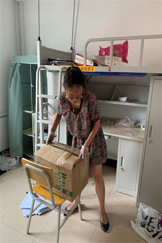 清理物品,妥善叠放,有序打包,接力搬运……老师们忙而不乱,井然有序地操作着。所有行李打包完毕,老师们将废弃物品以及垃圾全部清理出宿舍,并按要求进行分类,保证了宿舍公寓的干净整洁。