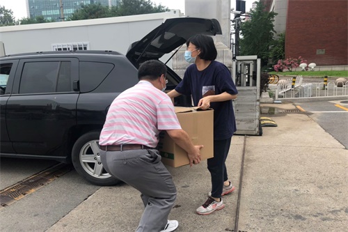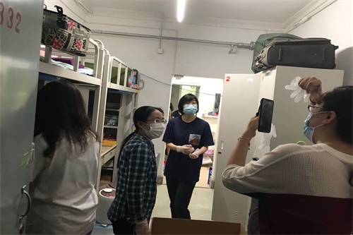 7月5日,党总支书记旋天颖、党总支副书记黄志勇、教师蔡晓雨、张小妹前往男生、女生宿舍,现场调研首批在京自行打包行李学生的具体情况,实地了解并帮助解决打包行李过程中遇到的问题与困难。同时,老师们亲手将毕业材料以及学院准备的毕业礼物送给毕业生,代表学院送去了对学生们的毕业祝福。